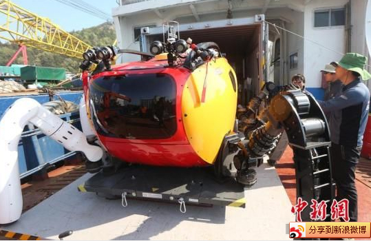 22日,韓國(guó)海洋科學(xué)技術(shù)院研發(fā)的多關(guān)節(jié)機(jī)器人被運(yùn)至鄰近事發(fā)海域的彭木港,該機(jī)器人在接受最后檢查后投入到搜救工作中。