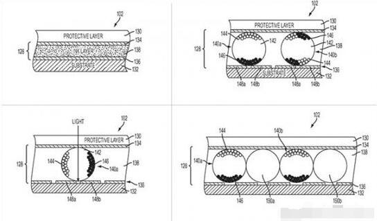 該文件還詳細(xì)描述了實現(xiàn)動態(tài)可調(diào)節(jié)的電子墨水屏的各種方法和技術(shù),從顏料變化到圖形轉(zhuǎn)變再到理想材料的選取等。此外,這一觸控條還提供了一種低功耗技術(shù),這是電子墨水顯示的獨(dú)特屬性之一。