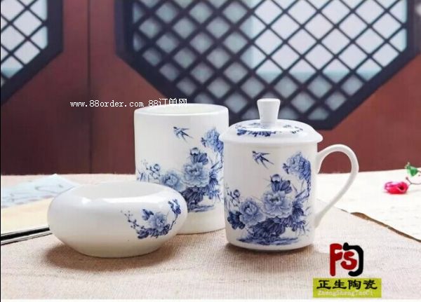 南京訂制辦公陶瓷禮品茶杯,煙灰缸筆筒套裝