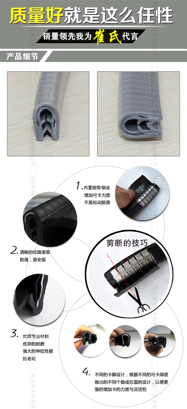 汽車U型膠條 卡口防撞條 螺旋紋裝飾條 密封條