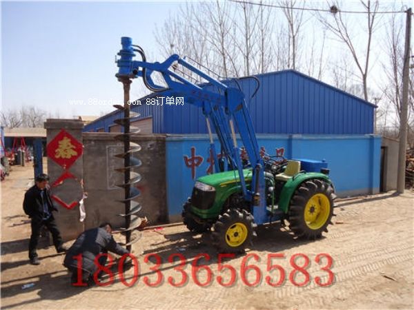 拖拉機挖坑機 :該機采用拖拉機,挖掘機,裝載機,鏟車,鉤機作為動力適用于電線桿坑鉆孔、鉆孔直徑徑范圍為:200mm-1000mm。適用于直接鉆孔立桿的工程,也適用于在坑中下卡盤的鉆孔工程。該機同時適用太陽能光伏發(fā)電中支架安裝時的鉆孔工程,將鉆桿卸下后安裝特定連接頭可直接用于螺旋樁的安裝。同時該機也被稱作為打樁機,在農(nóng)村房屋改造工程工,該機可以用于樁基的鉆孔。該機充分實現(xiàn)了一機多用的功能,大大提高工作效率。