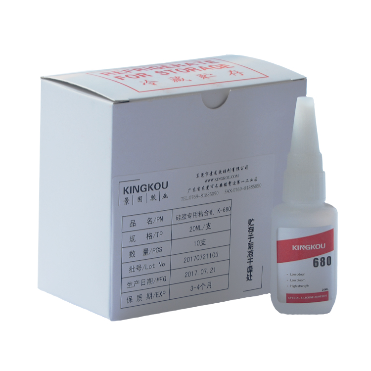 景固kingkou k-680硅膠專用粘合劑粘硅膠無需處理劑,一舉解決了目前快干膠粘硅膠必須處理才能粘牢的難題,主要用于粘接硅膠以及不同材質(zhì)之間的小面積互粘,具有可室溫固化、操作方便、粘接強度高、快速定位,對各種難粘材質(zhì)具有極高的附著力等優(yōu)良性能!