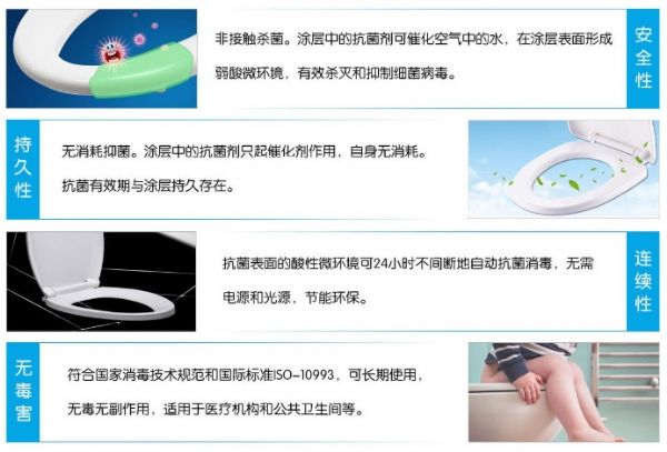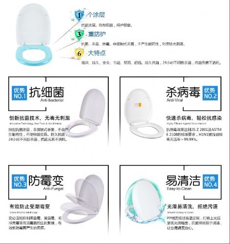產(chǎn)品介紹:安必潔抗菌馬桶蓋,是由北京安霸泰克生物科技有限公司,將德國先進(jìn)的抗菌技術(shù)應(yīng)用在衛(wèi)生潔具上的大膽嘗試。其采用純pp原料注塑成型后,在墊圈表層噴涂了含有安必克無機(jī)抗菌元素的涂層,具有長效、廣譜、安全的抗菌能力,可以有效殺滅馬桶蓋表面的各種致病微生物,隔斷絕大多數(shù)細(xì)菌、超級細(xì)菌、病毒和霉菌的傳播感染,為您創(chuàng)造安全的如廁環(huán)境;