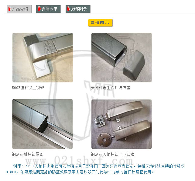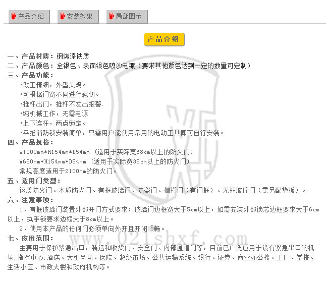 3、門內(nèi):推杠式逃生鎖體;門外:帶鑰匙保險(xiǎn)鎖頭