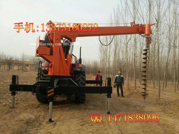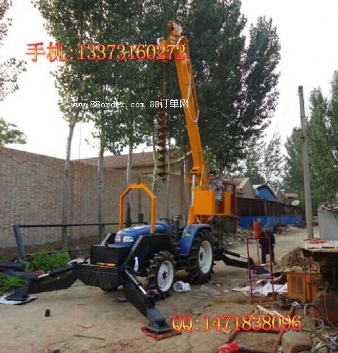 采用804以上拖拉機,挖坑吊桿一體機馬力大,動力充沛。鉆孔無需清土,一個人即可完成工作,鉆到深度后,可靠吊臂提起,土都附著在螺旋葉片上,很少有回落。提起后只需將鉆桿正反轉動記下土就會自然落下。拖拉機立桿機鉆坑立桿一體機可以實現(xiàn)單人操作,車到孔成,隨鉆隨走。大大提高工作效率。拖拉機鉆坑一體機起吊高度為挖坑吊桿一體機15米型,起吊重量5t. 采用四輪驅動拖拉機改裝而成,越野性能好。拖拉機鉆坑一體機大大擺脫了普通吊車收地形限制的局限性,可以方便引用于狹窄的小巷,鄉(xiāng)間田野,水田,丘陵等地帶。特別適合于電力施工單位及其他在狹窄區(qū)域能作業(yè)的施工單位。挖坑吊桿一體機