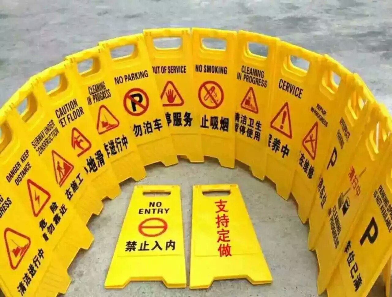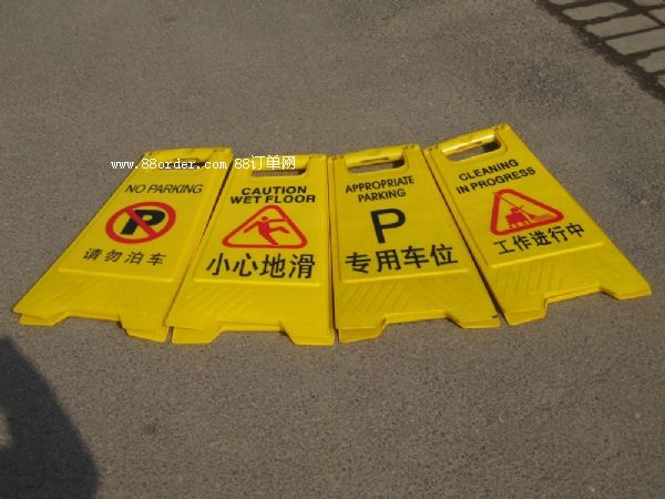 a字牌使用很廣泛,因而有很多不同的內(nèi)容,如:請勿泊車,車位已滿,預留車位,專用車位,小心地滑,正在維修,暫停服務,注意安全,禁止吸煙,工作進行中等字樣.