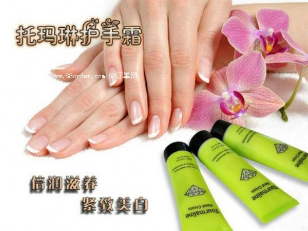 托瑪琳護(hù)手霜是我廠研發(fā)的新型美白保濕護(hù)手霜,該款托瑪琳保健護(hù)手霜的主要成分為托瑪琳、去離子水、甜杏仁油、小麥胚芽油、水解膠原、銀耳多糖、積雪草提取物、甘菊提取物、海藻糖,深層滋養(yǎng)肌膚,美白保濕效果顯著,長期使用令肌膚緊致細(xì)滑。手部護(hù)理隨時(shí)隨地,貴在堅(jiān)持;出門和睡覺前涂抹該款托瑪琳護(hù)手霜,隨時(shí)給您的手部做好防護(hù);做家務(wù)前涂抹本款保健護(hù)手霜,家務(wù) 保養(yǎng)兩不誤;涂抹托瑪琳護(hù)手霜做健美操,可促進(jìn)新陳代謝;洗手未干時(shí)涂抹本款保濕護(hù)手霜,持久鎖水,效果更佳。我廠此次推出這款托瑪琳護(hù)手霜主要是根據(jù)廣大客戶的反應(yīng)以及市場行情所作出的調(diào)整,此款托瑪琳護(hù)手霜一經(jīng)上市就廣受客戶好評,歡迎各地經(jīng)銷商、代理商、會(huì)議營銷商們來電咨詢合作!