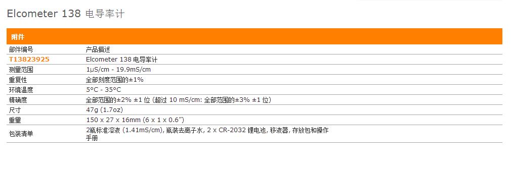 elcometer 138 電導率計含一個平面的傳感器,*需一滴樣本即可檢測溶液的電導率。