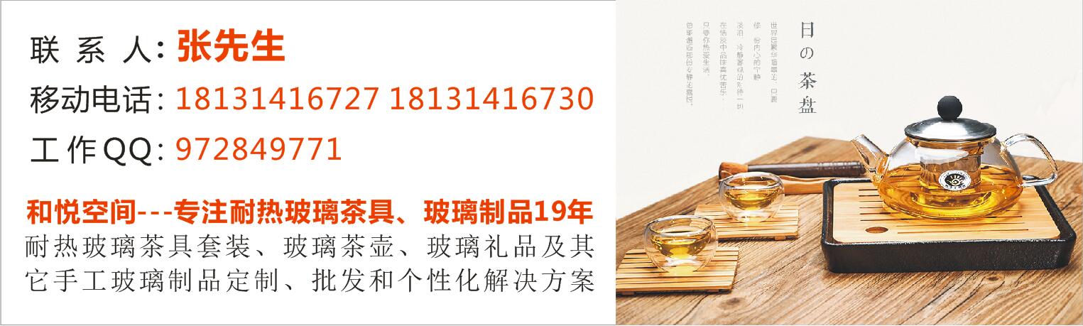 承德安和玻璃制品有限公司(主要經(jīng)營(yíng)耐熱玻璃茶具定做批發(fā))旗下品牌和悅空間是中國(guó)手工玻璃制品中耐熱玻璃茶具的領(lǐng)先品牌。定做批發(fā):0314-18131416727 18131416730。耐熱玻璃茶具哪里有賣(mài)的?耐熱玻璃茶具多少錢(qián)一套?耐熱玻璃茶具哪家好?這些耐熱玻璃茶具的問(wèn)題都可以找我們。