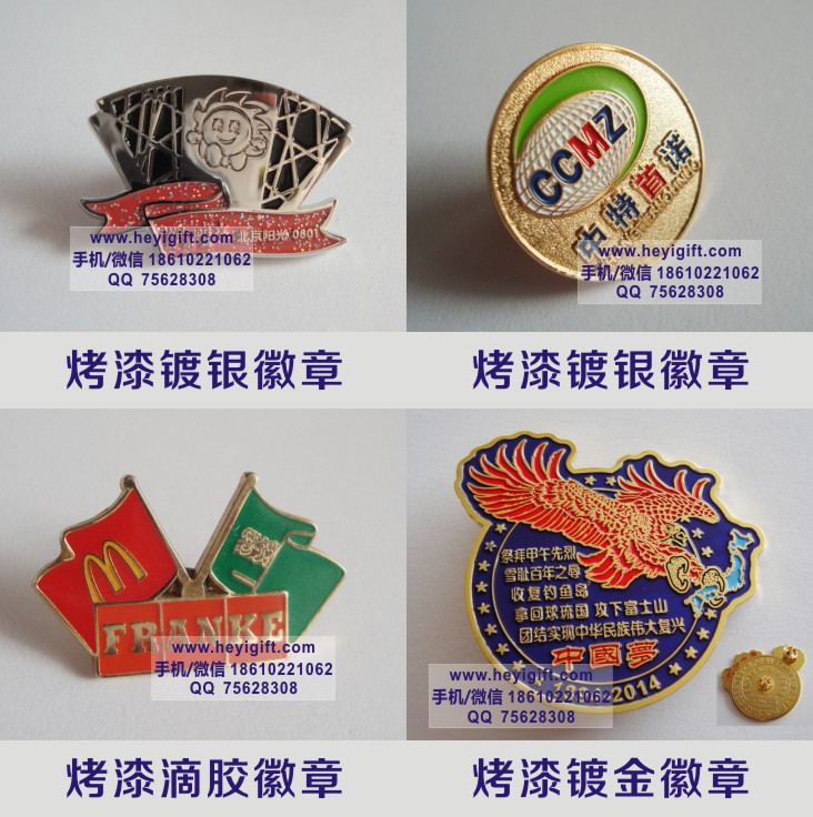 主要工藝有:蝕刻(咬板)、壓沖、注漆(填油)、絲印、滴膠、仿琺瑯、鋅合金壓鑄、柯式印刷等。材料可選用銅、鐵、鋅合金、馬口鐵、鉛錫合金、pvc等材料。