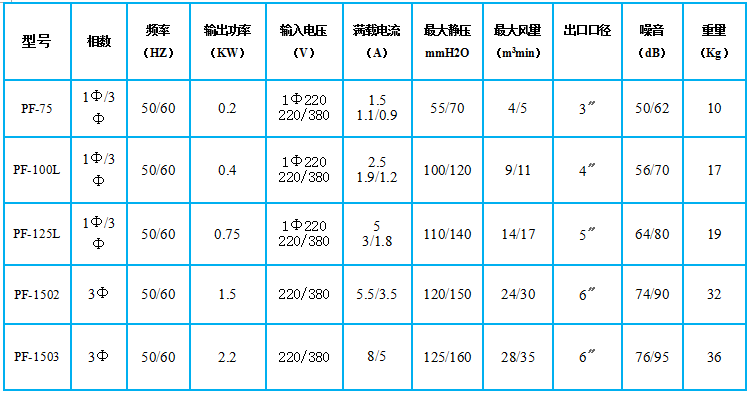 性能:壓力高、低噪音、大風(fēng)量