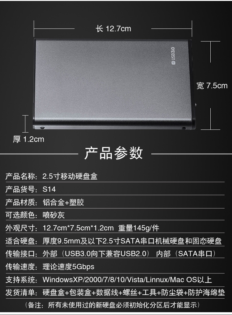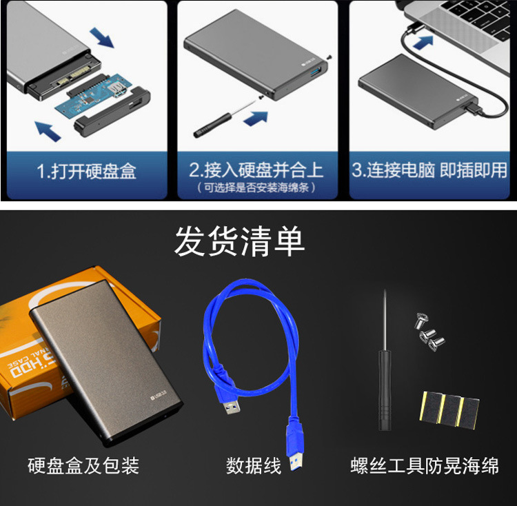 移動硬盤盒2.5寸USB3.0SATA串口筆記本外置金屬