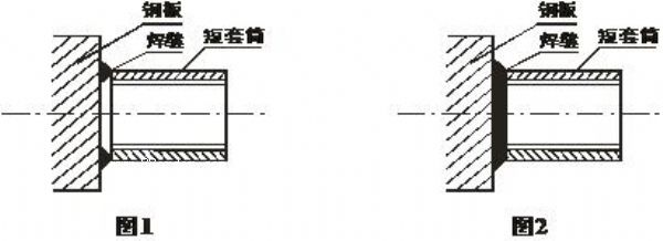 3、沿著短套筒倒角進(jìn)行施焊一周至規(guī)定焊縫要求(見(jiàn)圖2);