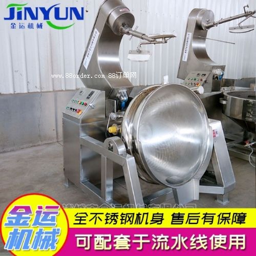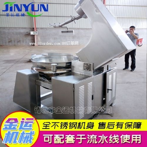 行星炒鍋采用蒸汽、液化氣、天然氣等加熱形式,攪拌方式采用特殊的傾斜式傳動(dòng),使用的行星式攪拌器與鍋體充分接觸,實(shí)現(xiàn)傳動(dòng)公轉(zhuǎn)與自轉(zhuǎn)的不整數(shù)傳動(dòng)比,使鍋內(nèi)無(wú)攪拌死角。使用先進(jìn)的傳動(dòng)與密封結(jié)構(gòu),使傳動(dòng)部分與鍋內(nèi)潔凈、衛(wèi)生。采用變頻調(diào)速動(dòng)力,運(yùn)行更平穩(wěn)。另本機(jī)采用液壓升降,翻鍋運(yùn)料,免拆裝攪拌器,節(jié)省人力,降低勞動(dòng)強(qiáng)度,是性能優(yōu)良的食品加工設(shè)備。