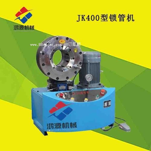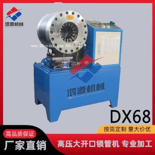 1、 扣壓機構是本機工作機構。壓套在油缸活塞的帶動下實現往復運動,使前滑動板上的內錐套推動具有對稱錐面的模座產生徑向收縮,實現模塊對膠管的扣壓。當收縮量達到標尺調定值時,扣壓自動停止,電磁換向閥換向后,液壓油進入開模油缸,推動活塞反向運動,模座在彈簧作用下帶動模塊復原。