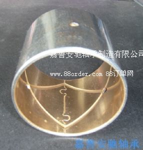 jf-800雙金屬軸承:是無油潤滑軸承中的一種,該產(chǎn)品是以優(yōu)質(zhì)低碳鋼背為基體,表面燒結(jié)cupb10sn10或cusn6zn6pb3或cupb24sn4鉛錫青銅合金及cusn6.5-0.1,經(jīng)數(shù)次高溫?zé)Y(jié)和致密軋制而成銅、鋼一體的雙金屬帶材卷制而成, 是合金軸承中承載能力最強(qiáng)的一種,適合于承受中速、高沖擊載荷的襯套、止推墊圈等多種類用途該.重型車的平衡橋襯套均使用該產(chǎn)品,是一種用途廣泛的高載荷低速運(yùn)動(dòng)軸承。 在較高的滑動(dòng)性能,在缺乏潤滑介質(zhì)和以水為介質(zhì)時(shí)有特別好的自潤滑性能適用于雙金屬鑄造材料,耐腐蝕高滑動(dòng)速度的軸承,及破碎機(jī)、水泵、冷軋機(jī)軸承,負(fù)荷達(dá)70mpa的活塞銷套.主要廣泛應(yīng)用于重型車的平衡橋襯套、墊片、汽車鋼板襯套 、內(nèi)燃機(jī)主軸瓦、連桿襯套、搖臂襯套、油泵側(cè)摩擦片、中小功率的內(nèi)燃機(jī)軸瓦、火車發(fā)動(dòng)機(jī)軸瓦、空氣壓力機(jī)軸套、制冷機(jī)等等.