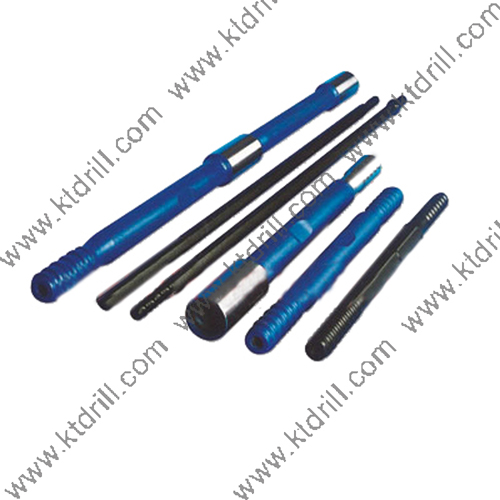 螺紋連接釬桿:螺紋連接釬桿是桿體兩端或一端帶有連接螺紋的中空圓形或中空六角形桿件,它是螺紋連接配套釬具的主體部件。螺紋連接釬桿一端通過連接套筒與釬尾和鑿巖機進行連接,另一端直接采用螺紋或者錐體結構形式與釬頭進行連接,或者一端通過連接套筒(有的釬桿桿體直接帶有連接套)與其他釬桿進行連接,組成螺紋連接配套釬具整體進行鉆鑿。螺紋連接釬桿可以單支與釬尾,釬頭連接鑿巖,也可以多支與釬尾,釬頭連接鑿巖,還可用于淺孔和小直徑巖孔鑿巖,適用范圍廣,鉆進速度快,沖擊能量傳遞損失小,鑿巖效率高,易于實現(xiàn)機械化鉆鑿和改善鑿巖條件等到優(yōu)越性。因而,螺紋釬桿在整個釬具產品制造與使用中所占比例已愈來愈大。可以說,它是所有釬具產品中品種最多,規(guī)格最全,數(shù)量較大,經(jīng)濟效益最佳的釬具產品。
