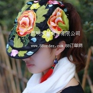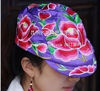 絕色芍藥云南民族風(fēng)立體刺繡花帽楊麗萍緞面繡花帽鴨舌帽批發(fā)LY