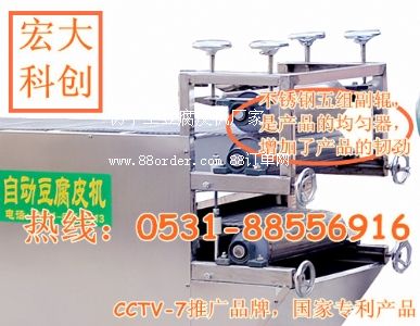 仿手工豆腐皮機好用嗎?0531-88556916/13075384365;仿手工豆腐皮機機身長度僅2.7米,系國內(nèi)最短機型,國家專利產(chǎn)品!