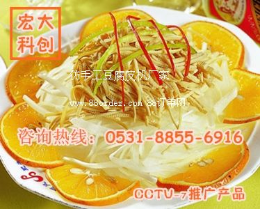 而該機(jī)二人操作,日產(chǎn)可達(dá)1噸,能制出超薄型的豆腐皮,并且產(chǎn)品彈性大,筋度高,薄厚均勻.疊 起用手摔不爛.口感好,遠(yuǎn)遠(yuǎn)勝于手工生產(chǎn)。