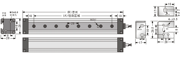 測(cè)量光幕傳感器gmdf系列尺寸圖: |