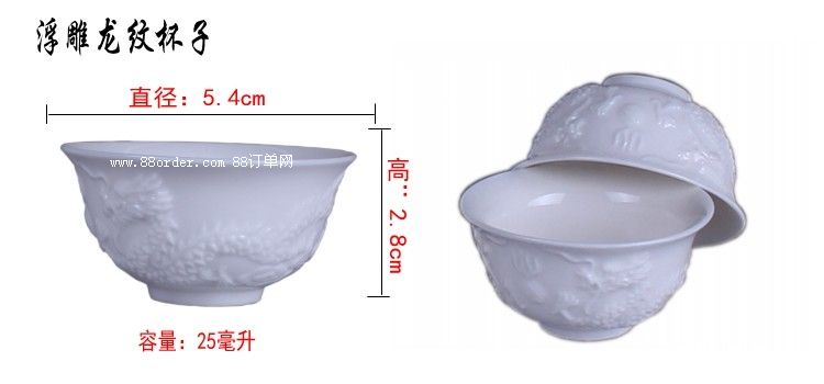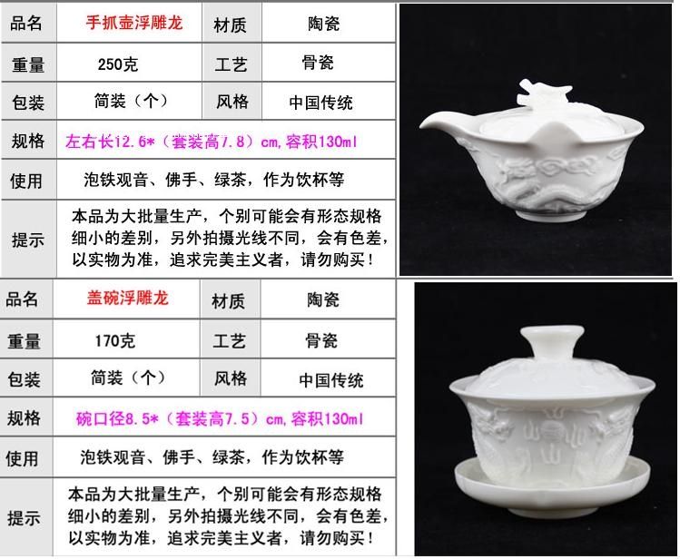 浮雕龍紋泡茶白玉瓷功夫茶具