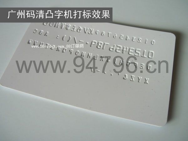用 途:是pvc證卡后期加工的必須設(shè)備。功能就是在pvc卡的表面壓出上凸或下凹的字符,使pvc證卡具備可識別性和唯一性。市場上的凸碼機(jī)有手動和電動兩種。手動凸字機(jī)價格比較便宜,使用比較簡單,所以中小制卡單位都使用手動凸字機(jī)。