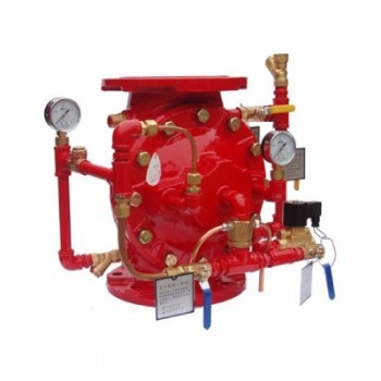 閥體采用專業(yè)流體三維設(shè)計(jì),隔膜采用優(yōu)質(zhì)雙夾層增強(qiáng)橡膠材料制成,彈簧采用不銹鋼,閥體與閥蓋采用球墨鑄鐵。國(guó)內(nèi)知名的生產(chǎn)廠家有上海陸功閥門(mén)有限公司。上海東隆閥門(mén)有限公司。平時(shí)裝在隔膜室出口管路上的電磁閥常閉,控制腔通過(guò)控制管路與供水側(cè)導(dǎo)通,維持隔膜室內(nèi)水壓,使閥處在關(guān)閉狀態(tài)。當(dāng)火災(zāi)報(bào)警系統(tǒng)探測(cè)火警信號(hào),經(jīng)過(guò)控制柜判斷確認(rèn)后,向電磁閥發(fā)出啟動(dòng)信號(hào),電磁閥打開(kāi)、隔膜室壓力下降,雨淋閥開(kāi)啟,水從開(kāi)式噴頭噴向整個(gè)保護(hù)區(qū),執(zhí)行滅火功能。