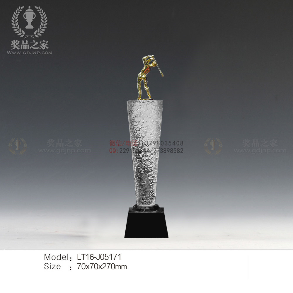 水晶獎(jiǎng)杯和水晶獎(jiǎng)座常用於會(huì)議慶典、商務(wù)公關(guān)、節(jié)日慶祝、紀(jì)念收藏等等,水晶獎(jiǎng)杯和水晶獎(jiǎng)座一般要求晶瑩剔透,閃閃發(fā)光,使用如冰雪般乾淨(jìng)的水晶作為材料,才能給人以尊貴高尚的氣質(zhì),用以獎(jiǎng)勵(lì)優(yōu)秀傑出人士再合適不過了。水晶獎(jiǎng)杯或水晶獎(jiǎng)座多用五角星形的圖案,寓意勝利、純潔,光照射於水晶獎(jiǎng)座上,讓人覺得絢麗多彩,充滿藝術(shù)氣質(zhì),能更顯對收禮者的尊重。
