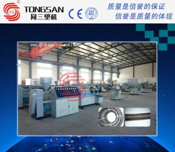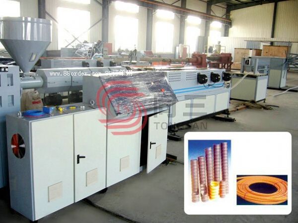 該生產(chǎn)線可連續(xù)生產(chǎn)螺旋波紋管,在波紋波底處打孔,具有高透水性、耐酸堿腐蝕、易彎曲、運(yùn)輸、按裝方便等優(yōu)點(diǎn)。為防止泥沙堵塞,該生產(chǎn)線配置了覆無(wú)紡布等裝置,集打孔、覆布于一條生產(chǎn)線。