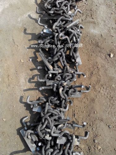 40t刮板 18*64*15:環(huán)的直徑18mm,內(nèi)徑64mm,15個(gè)這個(gè)樣的圓環(huán)連接在一起構(gòu)成一條鏈子;每條圓環(huán)鏈大約有900mm的長(zhǎng)度,再配上連接環(huán),每條圓環(huán)鏈有1米長(zhǎng)。按照國(guó)家的生產(chǎn)標(biāo)準(zhǔn),刮板機(jī)的長(zhǎng)度為100米,由于鏈條是有機(jī)頭和機(jī)尾的軸承帶動(dòng),鏈條形成一個(gè)圓形,一直環(huán)繞著刮板運(yùn)行,每臺(tái)刮板機(jī)需要200條鏈條。如果是雙鏈的刮板機(jī)就需要400條鏈條,400個(gè)連接環(huán)、100個(gè)刮板、400個(gè)螺栓。