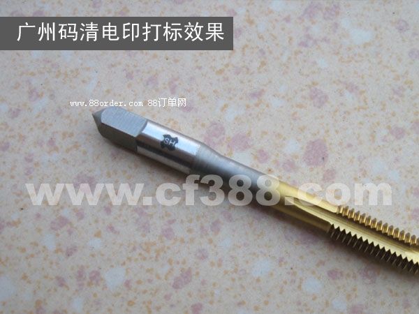 任意圖案文字;精度極高,字高僅為0.5mm的英文字依舊十分清晰無毛刺,打標(biāo)效果完全可與激光打標(biāo)媲美,而且顏色通常比激光深;打的標(biāo)耐高溫,不怕任何【敏感詞】國人都懂的的侵蝕,永不褪色、脫落;小到直徑2mm的鉆頭,大到數(shù)平方米的鋼板;平面或弧面;都能輕松打標(biāo)。