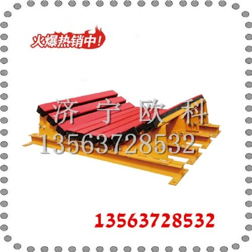 固定式緩沖床采用4根固定的支撐架和60mm厚的鋼板焊接而成,提供對(duì)輸送帶運(yùn)行時(shí)的支持作用,有效吸收落料對(duì)輸送帶的巨大沖擊力。