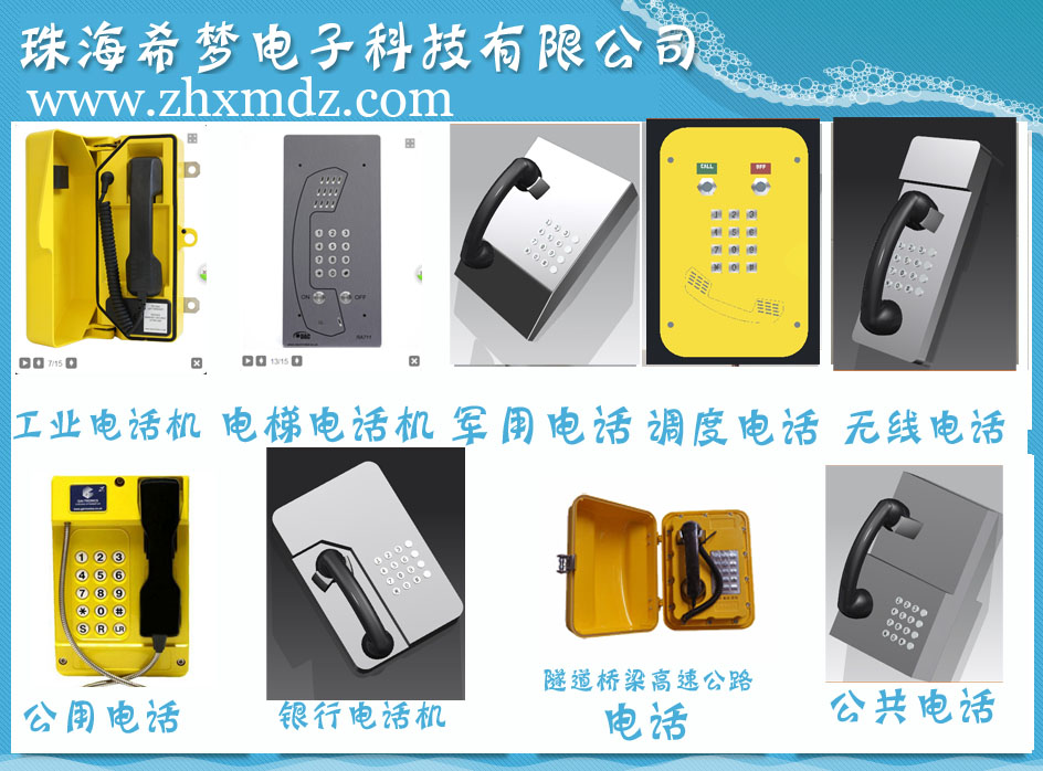 適用領域:隧道,銀行,監(jiān)獄,礦山,高速公路,電廠電站,旅游景區(qū),粉煤廠,以及一些惡劣環(huán)境使用的電話機,以及一些配件。