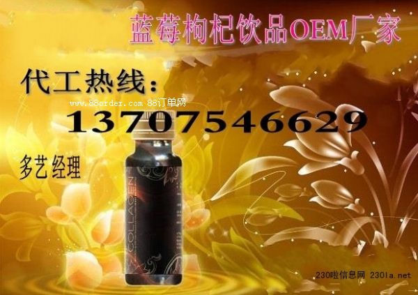 上海中邦專業(yè)生產藍莓膠原蛋##枸杞酵素代加工、果蔬酵素oem代加工、藍莓枸杞飲品oem、藍莓膠原蛋白代加工、秘魯瑪咖飲料代加工、藥食兩用飲品代加工、諾麗果酵素來料加工,玫瑰四物飲oem……多種產品供您選擇;每個產品均高質高效;更能增加您利潤的回報,讓您輕松而長期受益! 產品質量達到食品級和醫(yī)藥級標準,并通過國家出口食品生產企業(yè)衛(wèi)生標準認證。代工熱線:13707546629 多藝 經理 qq:2043611291