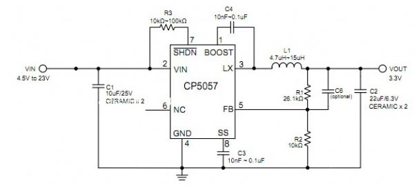 開關(guān)電源(switching power supply)具有高電源轉(zhuǎn)換效率、熱損低的特性,可解決缐性穩(wěn)壓器面臨的效率不佳的問題。但其電路較復(fù)雜,占pcb板面積較多。cp5057為內(nèi)含mosfet的開關(guān)電源,可簡化電路及減少pcb板的面積。