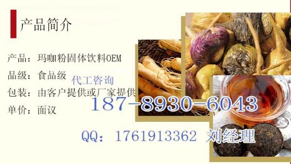 瑪卡粉代加工,瑪卡粉oem貼牌廠家、瑪卡粉固體飲料加工,進(jìn)口瑪咖粉劑貼牌oem合作廠家、黑瑪卡粉劑貼牌、瑪卡茶粉oem生產(chǎn)吞服片、咀嚼片、泡騰片、包衣片聯(lián)系電話:18789306043 qq:1761913362 劉海敏 經(jīng)理
