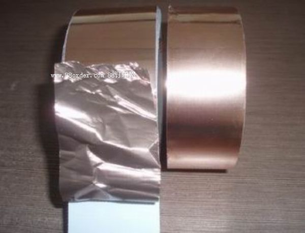 雙導(dǎo)銅箔;基材:銅箔,傳導(dǎo)壓克力膠,粘性好,附著力強(qiáng)。性能:具有保溫,隔熱,防水,粘力佳,耐寒性好,易撕,可消除電磁干擾(emi),隔離電磁波對(duì)人體的危害,避免電壓或電流影響功能,主要用于電腦顯示器電腦周邊線材與變壓器制造中央空調(diào)管線,抽煙機(jī),冰箱,熱水器等的管線接縫,精密電子產(chǎn)品、電腦設(shè)備、電線、電纜等;高頻傳輸時(shí),隔離電磁波干擾,耐高溫防止自燃,規(guī)格:(0.018mm-0.095mm)各種厚度,寬度可任意分切。