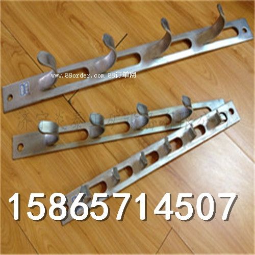 采用扁鋼q235 用冷沖模具加工而成的可以懸掛電纜的裝置,排列有一個或多個弧形掛鉤和固定于墻面的孔組成,沖壓墻面固定式。