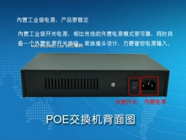 4、集中供電,一個(gè)交換機(jī)就可以同時(shí)給8臺(tái)設(shè)備供電,方便管理,另外,單一的ups就可以提供所有設(shè)備在斷電時(shí)的供電
