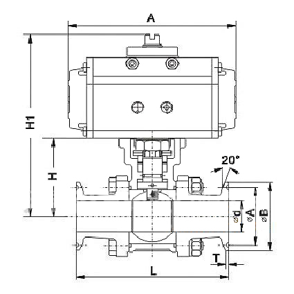 q681f氣動快裝球閥安裝尺寸圖