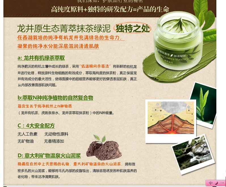 西湖有機(jī)龍井 維他命e 茶樹精油 天然火山礦物泥