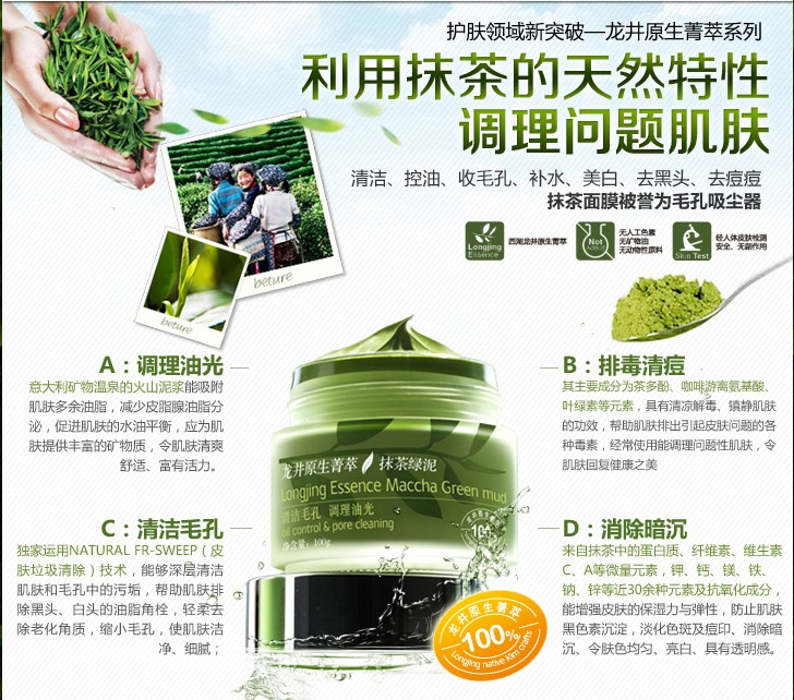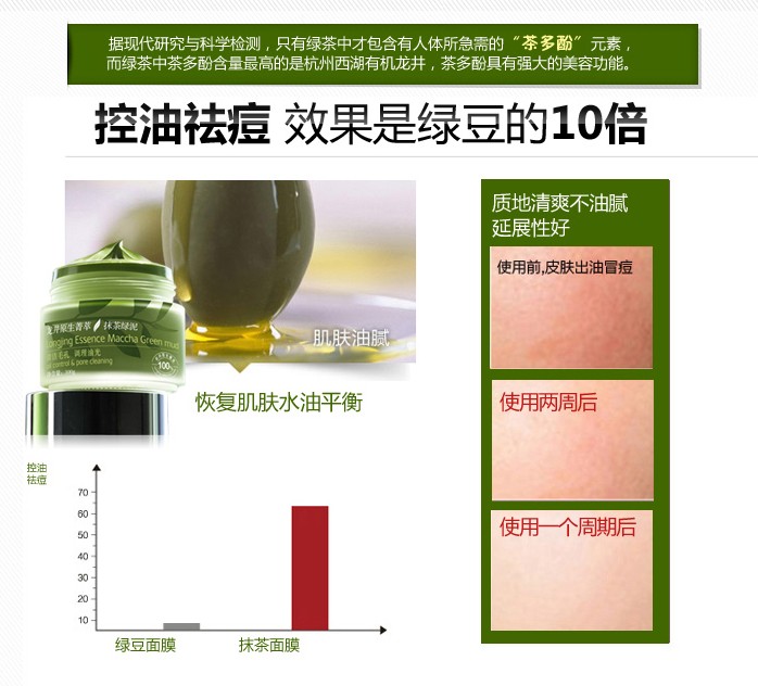 抹茶面膜采用天然抑菌成分代替防腐劑功能