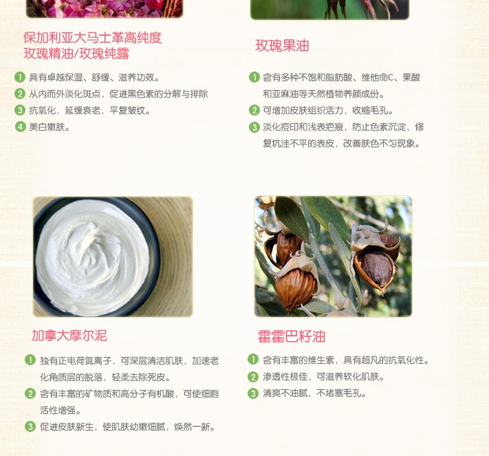 提高皮膚抗過敏能力,激活免疫功能,延緩皮膚衰老,易吸收。