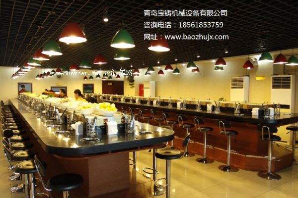 回轉(zhuǎn)火鍋設(shè)備不但能夠節(jié)約大量的人力成本,而且顧客也有了更多的選擇性,食材放在運(yùn)輸帶上的時(shí)間也相對(duì)較短,保證了食材的鮮。運(yùn)輸帶上除了火鍋食材之外,還有其他小吃、水果、甜點(diǎn)、湯底等。通常在店內(nèi)有集中的調(diào)味臺(tái)和飲料機(jī)供顧客自行取用,回轉(zhuǎn)火鍋設(shè)備哪里有賣,調(diào)料種類有芝麻醬、沙茶醬、辣油、陳醋等數(shù)十種,受到多數(shù)消費(fèi)者的喜愛。