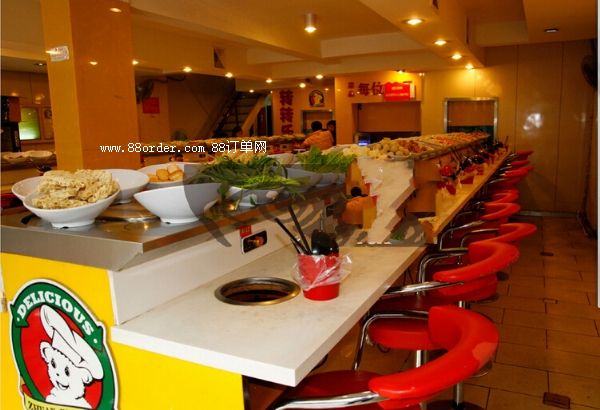 陳醋等數(shù)十種。回轉(zhuǎn)火鍋是一種全新的事物,它是在中國傳統(tǒng)火鍋借鑒日式回轉(zhuǎn)壽司的一種新型餐飲方式。同回轉(zhuǎn)壽司類似,將火鍋食材放在容器里擺在運(yùn)輸帶上,