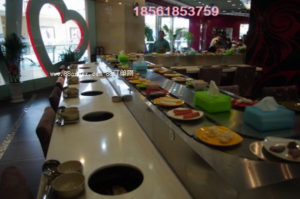 麻辣燙轉(zhuǎn)轉(zhuǎn)火鍋 其“轉(zhuǎn)”是指火鍋與傳統(tǒng)的食用方式和就餐環(huán)境是不一樣的,h是旋轉(zhuǎn)臺(tái)式的,各種火鍋食物均放在旋轉(zhuǎn)臺(tái)上,有消費(fèi)者自主選擇,在吃飯的過程中自得其樂