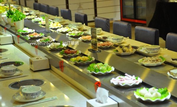 青島寶鑄回轉(zhuǎn)小火鍋利用現(xiàn)代化的餐飲設(shè)備開創(chuàng)新型餐飲模式;剞D(zhuǎn)小火鍋采用全自動機械傳送食材,其特點是時尚、衛(wèi)生、快捷、營養(yǎng)全面,不必長時間等餐,根據(jù)不同人群的需求即可以是快餐也可以是慢慢享受的美食。無需大廚,管理便捷,自動化機械傳送食材,即保證菜品新鮮衛(wèi)生又免去人力傳菜環(huán)節(jié),可有效節(jié)約人力成本,提高顧客滿意度,增加經(jīng)營利潤。 青島寶鑄回轉(zhuǎn)小火鍋用途廣泛,已經(jīng)成為當今一種流行的元素,適用于麻辣燙、壽司、火鍋、自助餐店及其他的商品展示。單人單爐符合人們的衛(wèi)生習慣,且該火鍋輸送設(shè)備具有兩用的優(yōu)點,冬天用在火鍋,夏天用在壽司,只要用特制的不銹鋼蓋板封住餐桌上的爐孔即可成為壽司輸送設(shè)備,既實惠又方便,讓您體現(xiàn)經(jīng)營壽司和火鍋的樂趣,又便于客人在各自的座位上可隨意選擇擺放在輸送帶上的食品,無需服務(wù)員送上。