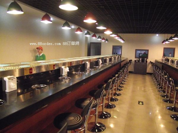 旋轉(zhuǎn)吧臺(tái),壽司料理,旋轉(zhuǎn)火鍋,自助火鍋餐廳。下架采30mm*30mm*1.5的碳鋼方管焊接而成,表面經(jīng)過(guò)防銹處理,所有連接部分均采用標(biāo)準(zhǔn)件連接,便于移裝。
