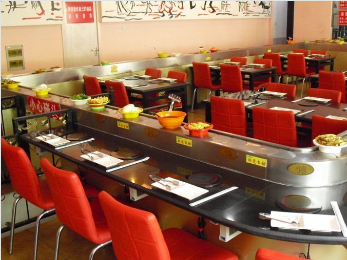 回轉(zhuǎn)火鍋輸送帶,適應(yīng)了飲食界推陳出新,適應(yīng)了現(xiàn)代人對飲食新奇的追求。